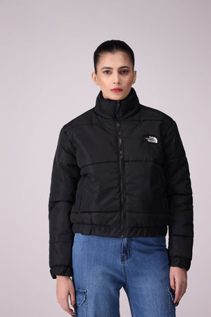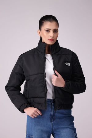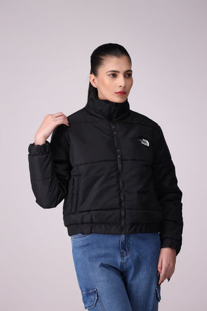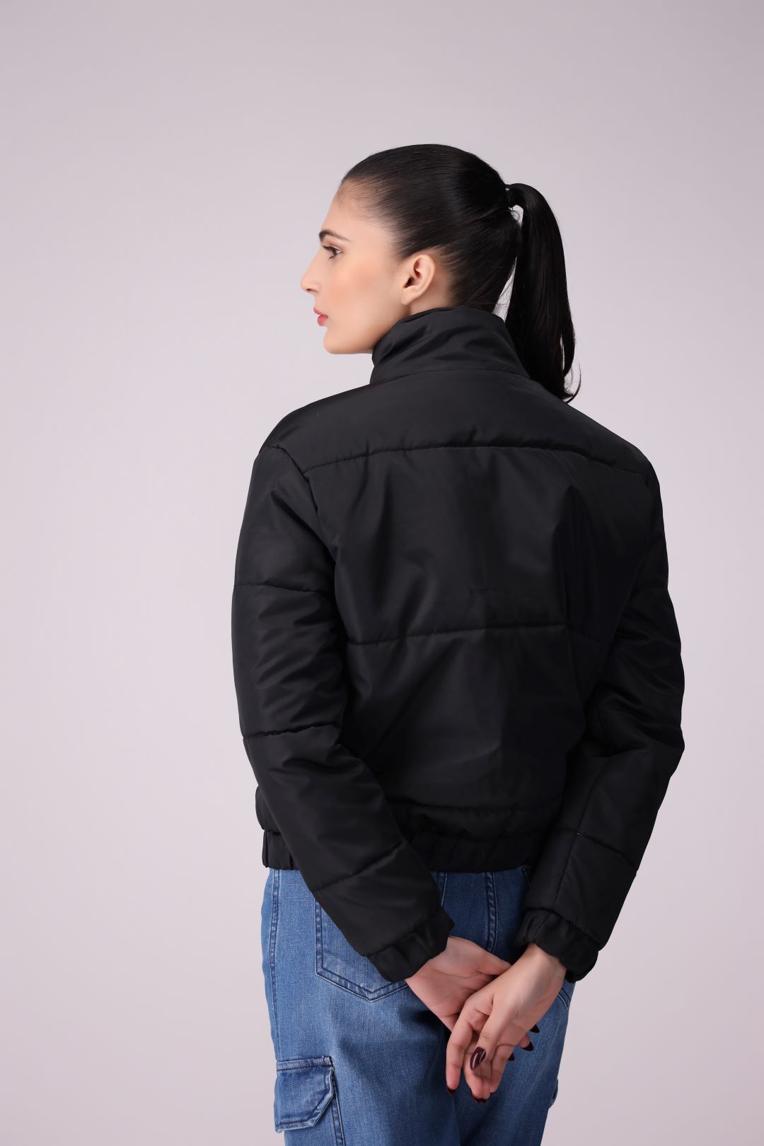 Black Ladies Quilted Puffer Jacket in Imported Fabric