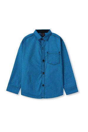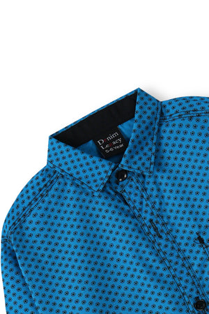 Blue with Black Print Boys Full Sleeve Casual Shirts
