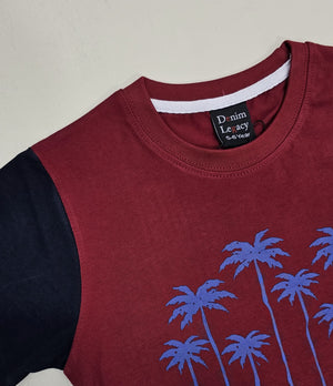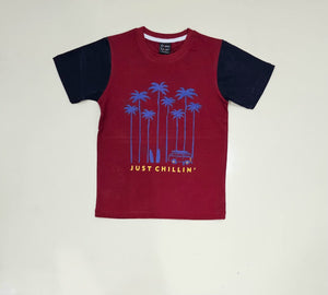 Boys Fashion T-shirts cotton jersey Red with contrast navy blue arms