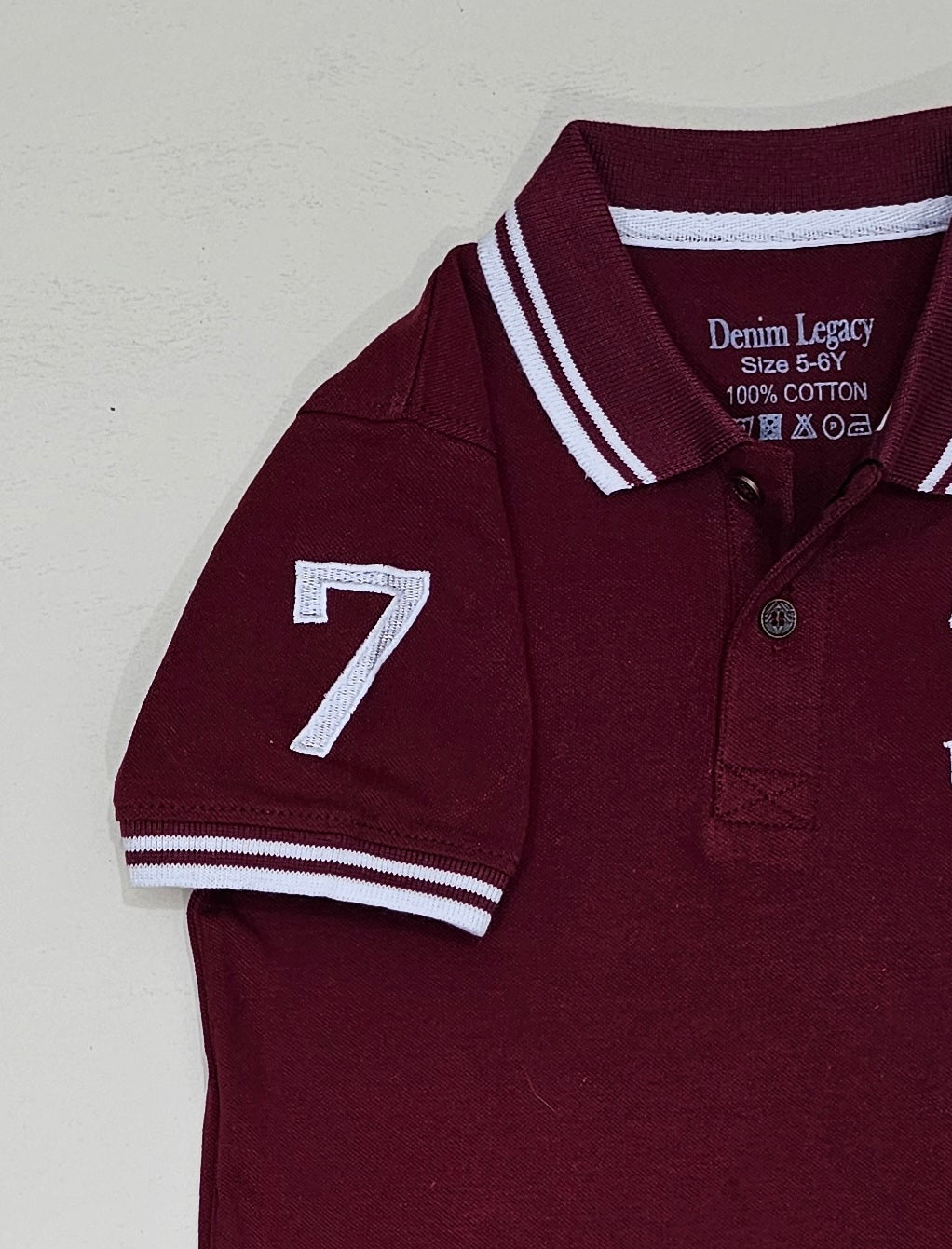 Boys Polo shirt PQ fabric, embroidered design, Dark Maroon colour.
