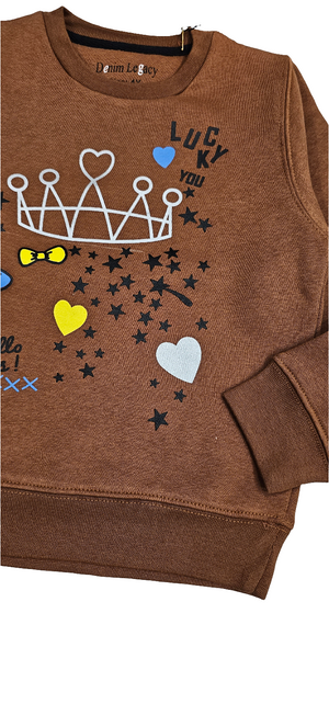 This Brown Crown Girls Sweatshirt is the perfect addition to any girl's wardrobe. Made with high-quality materials, it offers both style and comfort. With a unique design featuring a brown crown, it will make your little princess feel like royalty. Available in sizes for all ages, it's a must-have for any fashion-forward girl.