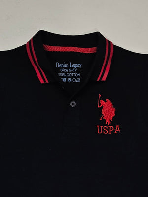 Boys Polo shirt PQ fabric, embroidered design, Black colour.