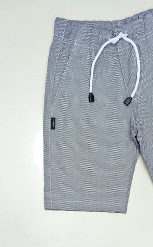 Boys printed Shorts, Cotton Stretch Fabric, Black print on white base colour.