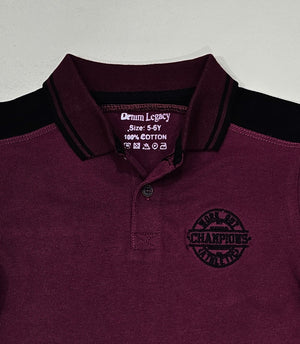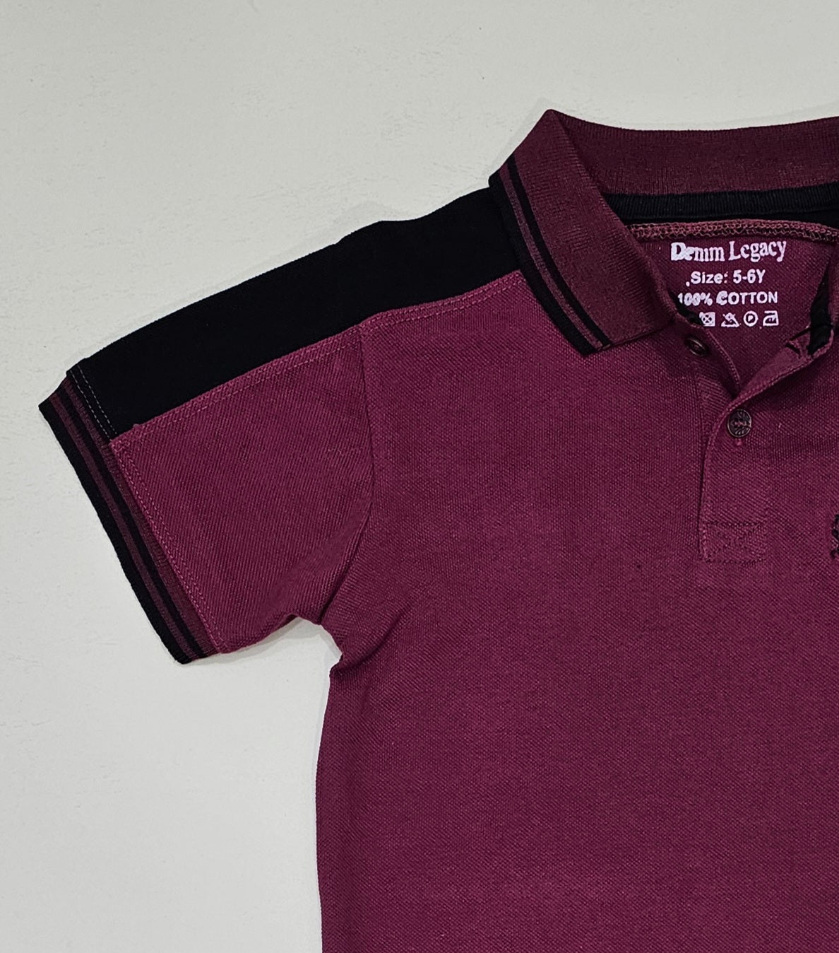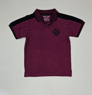 Boys Maroon PQ fabric polo with Black panel contrast.
