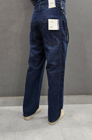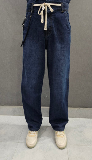 GD - Dark Blue. Loose Fit Jeans, side stitch panel with chain, soft comfortable non stretch Denim.