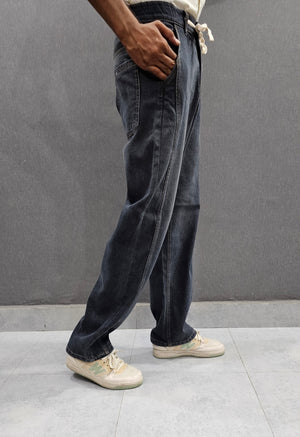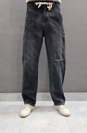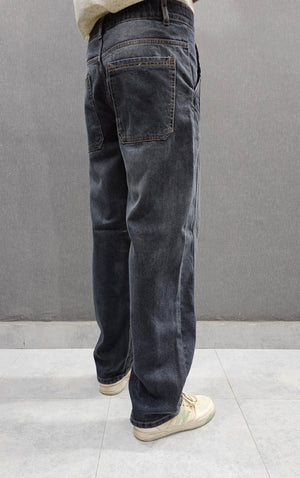 Grey Front Double Stitch Loose Fit Jeans, soft comfortable non stretch Denim.