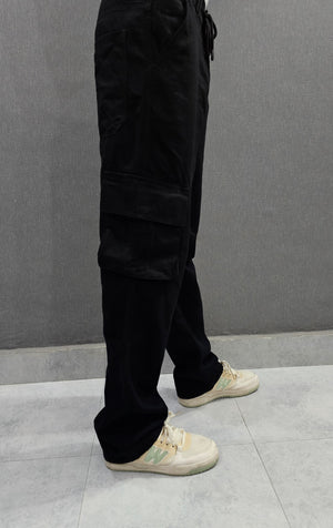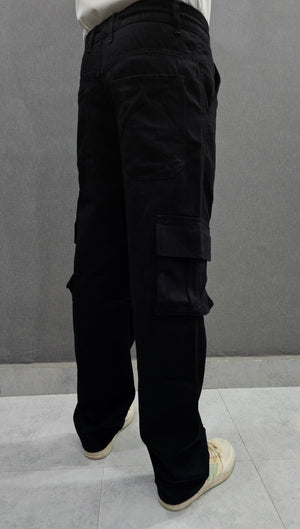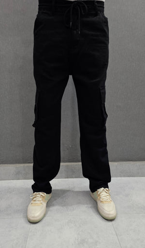 Loose Fit Ballow 6 pocket Jeans, elasticated belt, Soft comfortable non-stretch Denim. Jet Black.