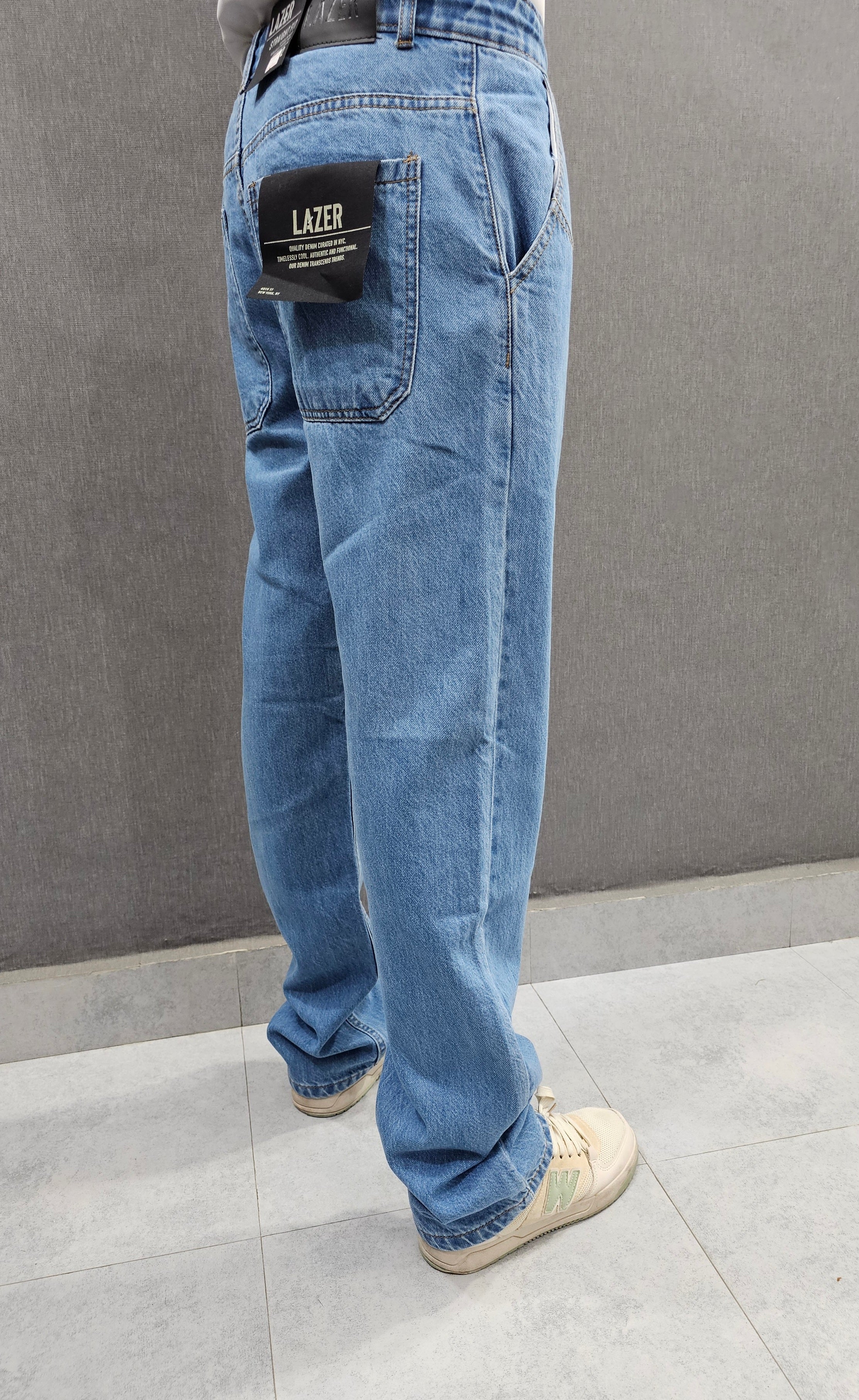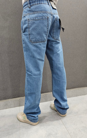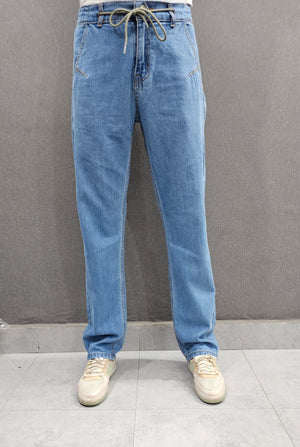 Men's Loose Fit Basic Jeans with elasticated belt, soft comfortable non non-stretch Denim. Sky Blue