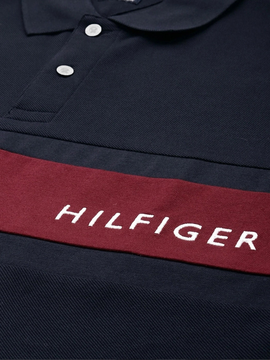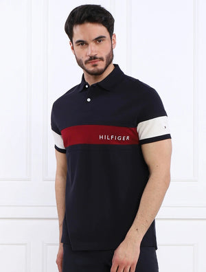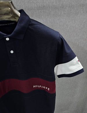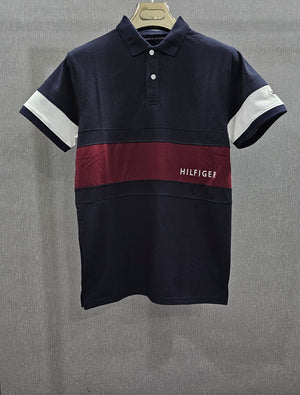 TH- Mens PiQue cotton contrast pannel polo shirts. Navy Blue