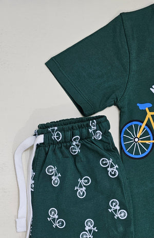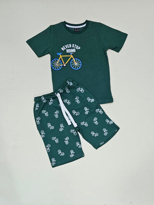 Dark Green, Never stop riding Boys Suit with Shorts in Cotton jersey fabric.