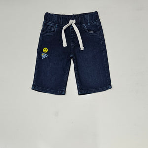 Smiley Kids Shorts Denim Stretch Fabric, Tinted Blue.