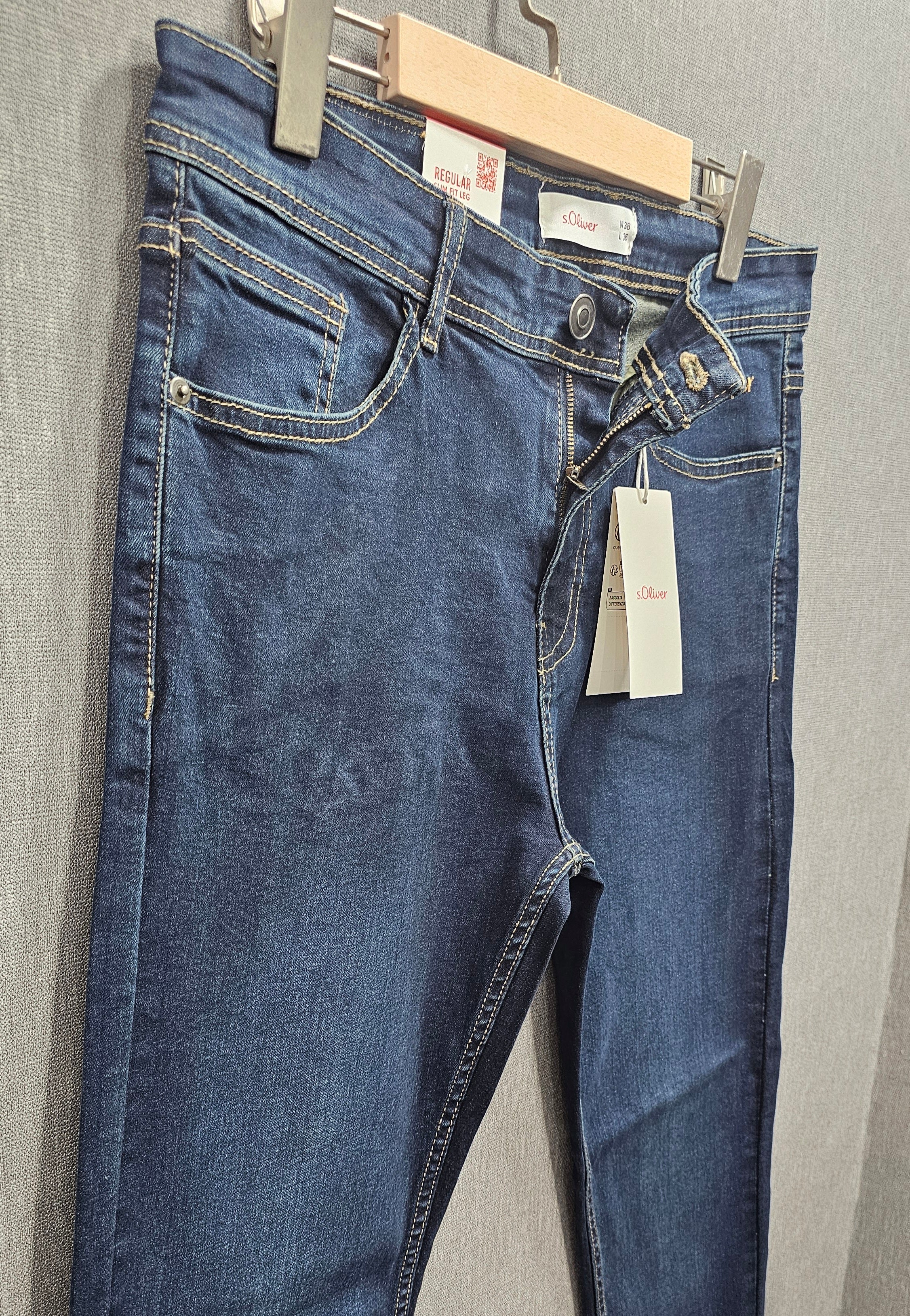 SO- Mens Regular Fit Jeans, soft comfortable Stretch Denim Fabric, Dark Tinted Blue colour.