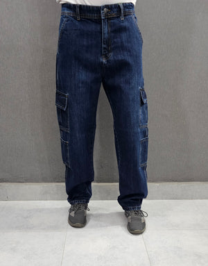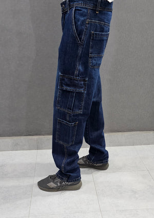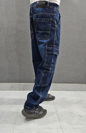 Dark Blue Loose Fit Jeans 8 pocket Jeans, Soft Comfortable non stretch Denim.
