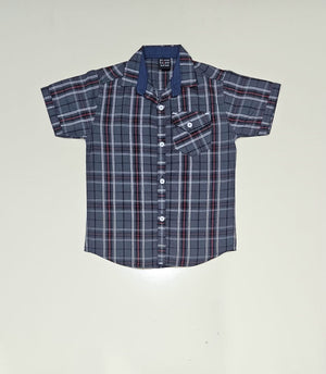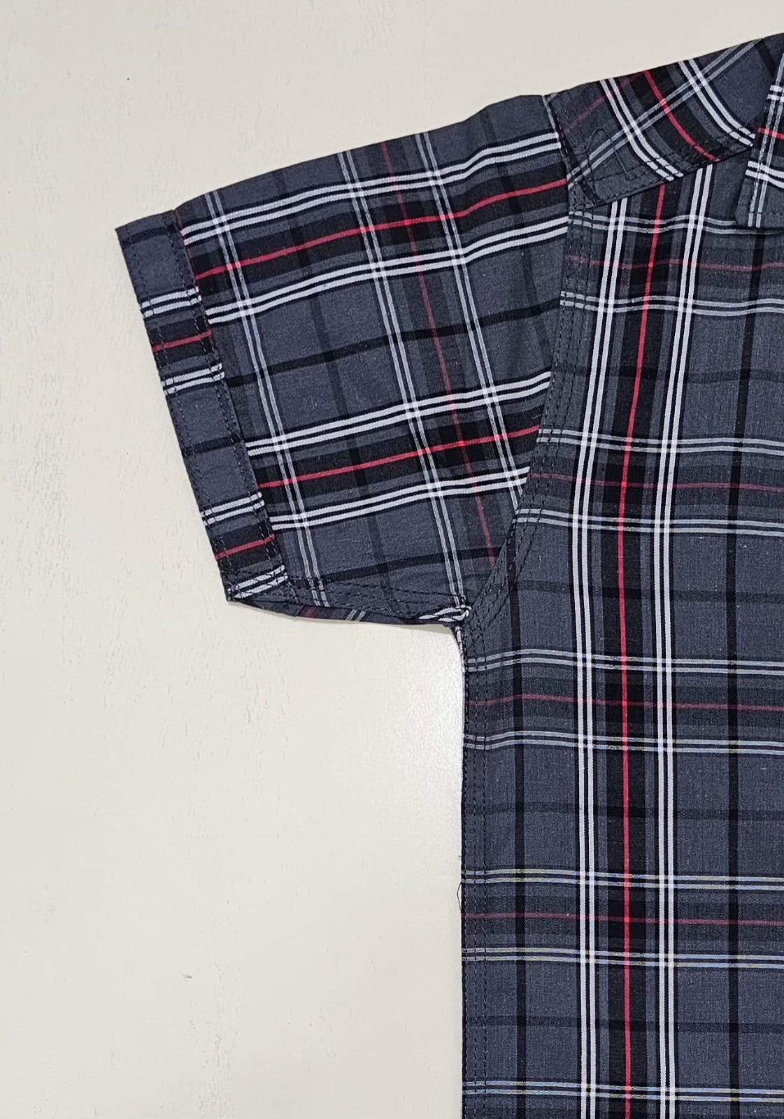 Dark Grey & red check Boys Half Sleeve Casual Shirts