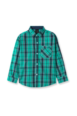 Green and Blue Check Boys Full Sleeve Casual Shirts