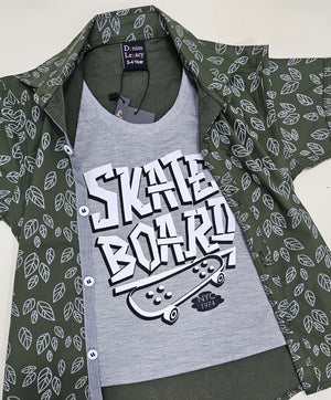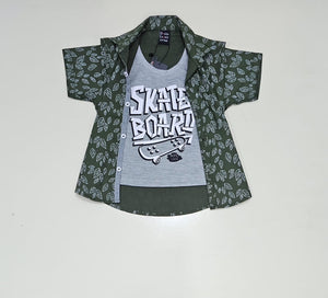 Boys Double shirt, Green print with inside grey printed tshirt.