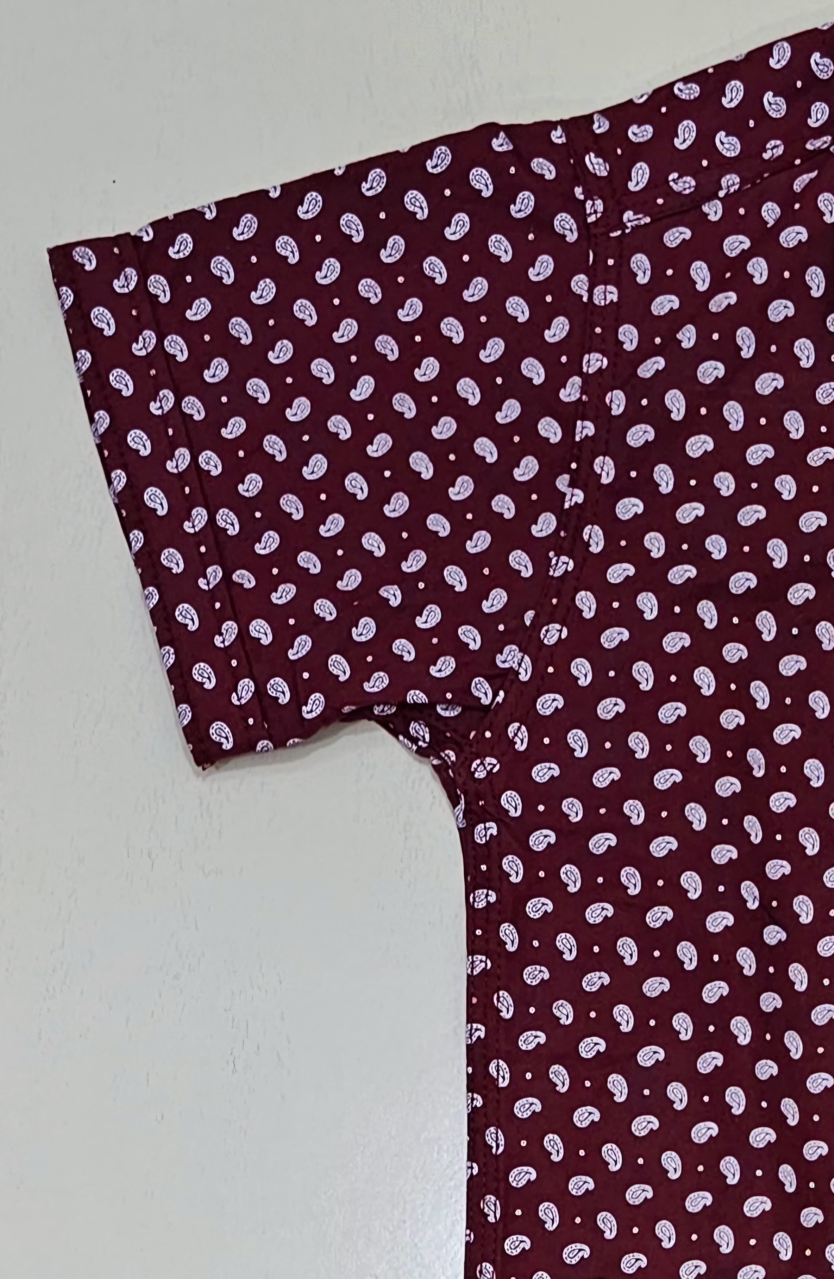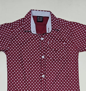 Maroon & White print Boys Half Sleeve Casual Shirts