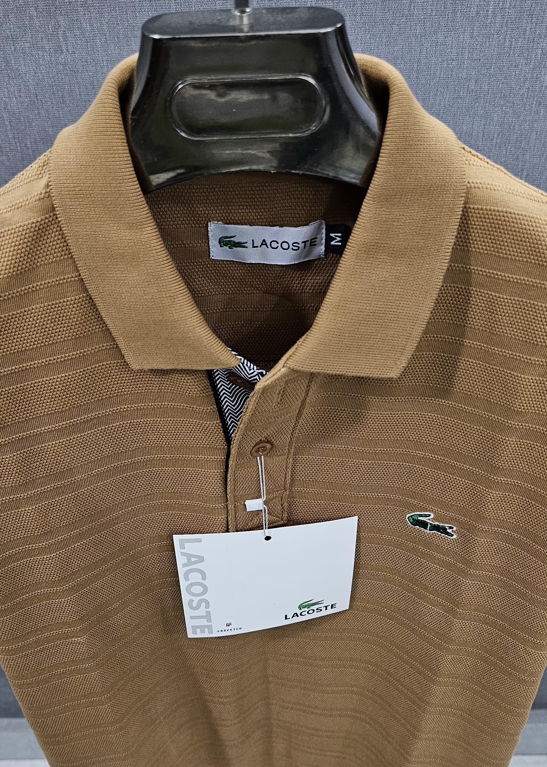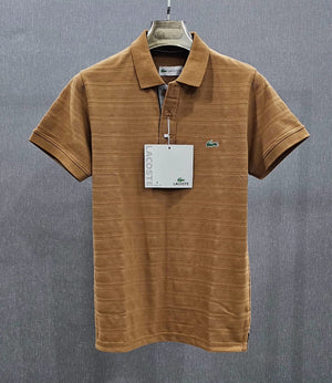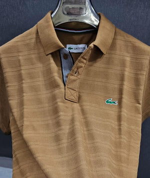 Mens knitted polo shirts in Cotton Jackard self Fabric Camel.