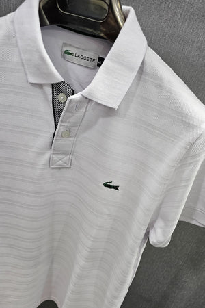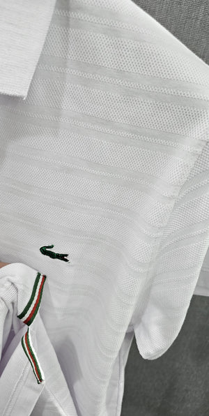 Mens knitted polo shirts in Cotton popcorn self Fabric White