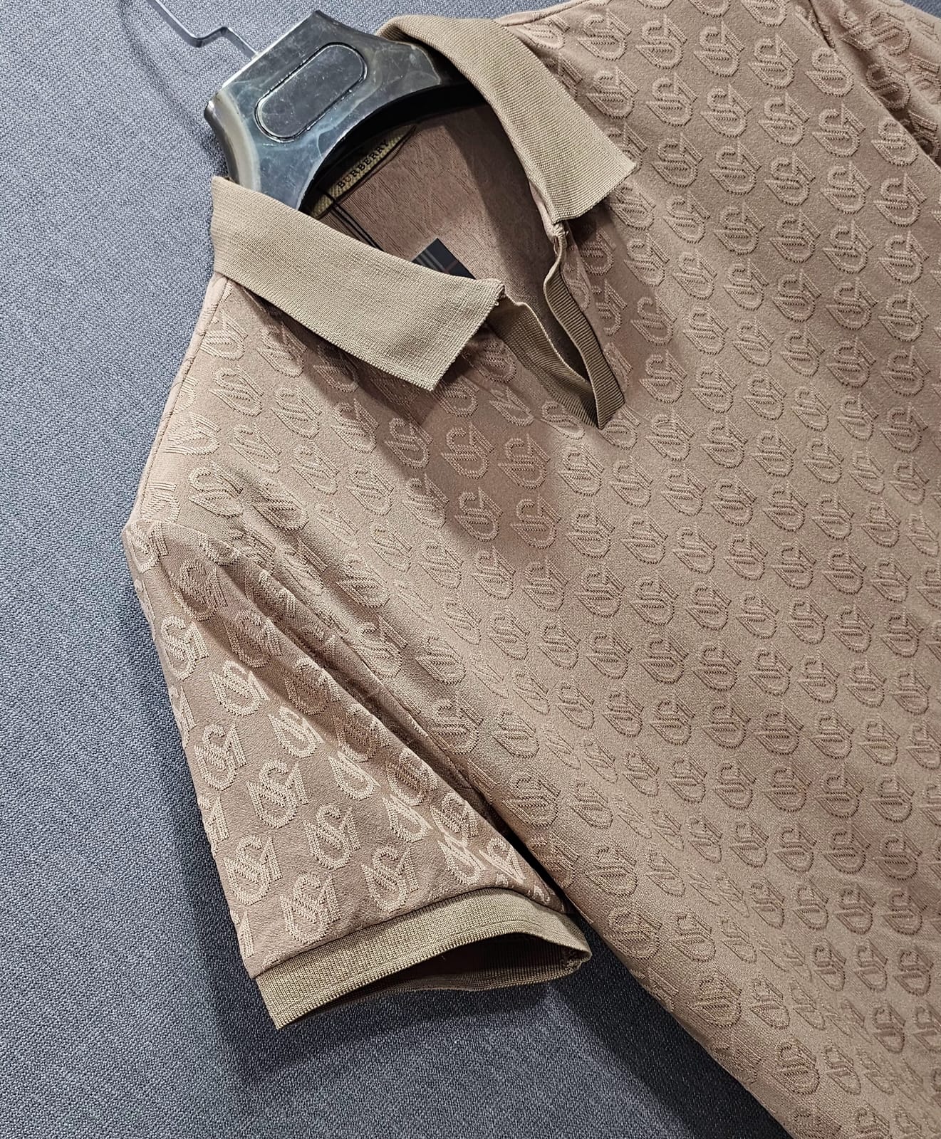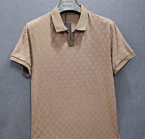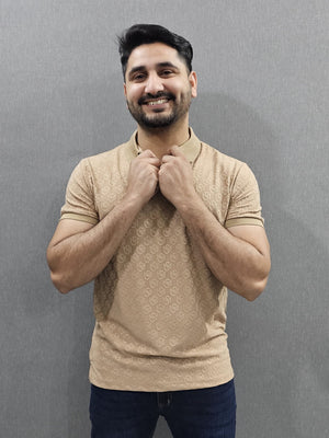 Mens knitted polo shirts in 4 side stretch self Imported Fabric Beige