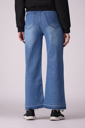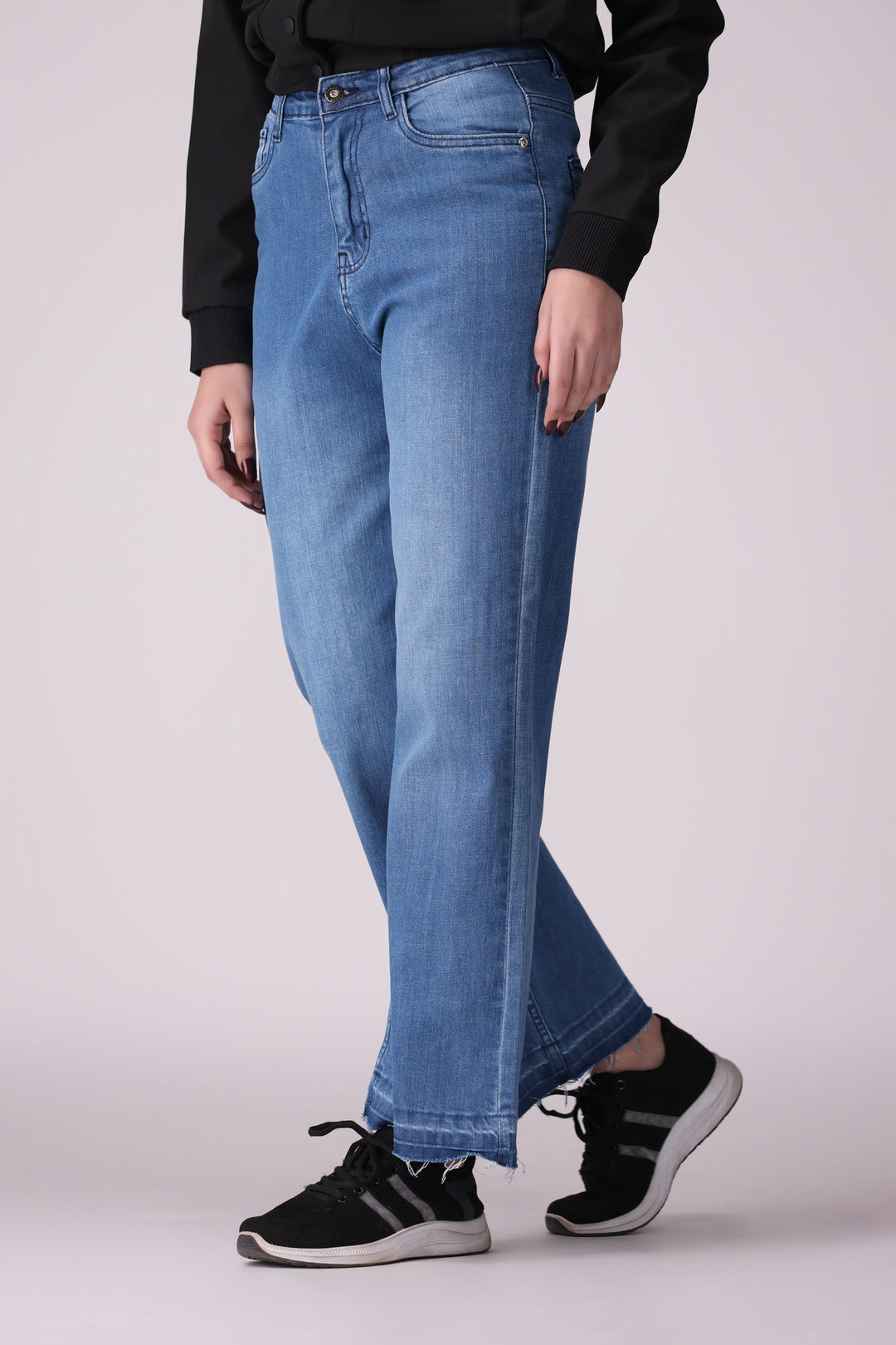 Mid Blue Wide Leg Open Bottom Ladies Jeans, comfort stretch Denim