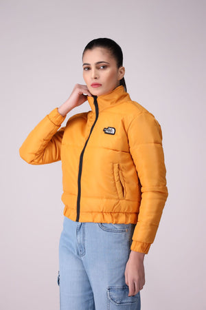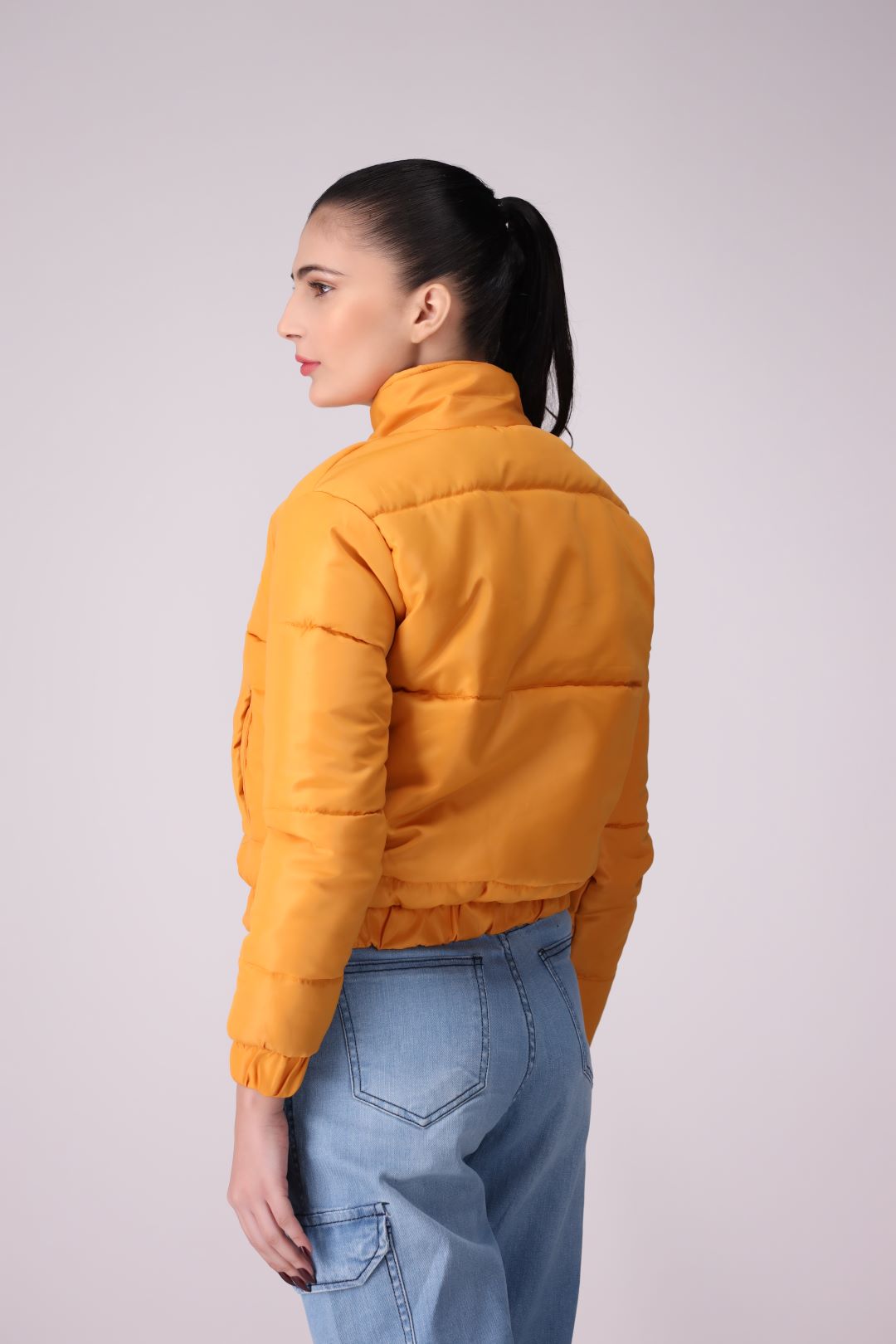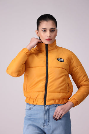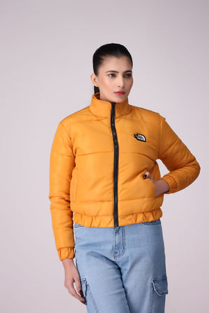 Mustard colour, Quilted Ladies Puffer Jacket in Imported Fabric.