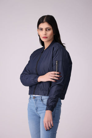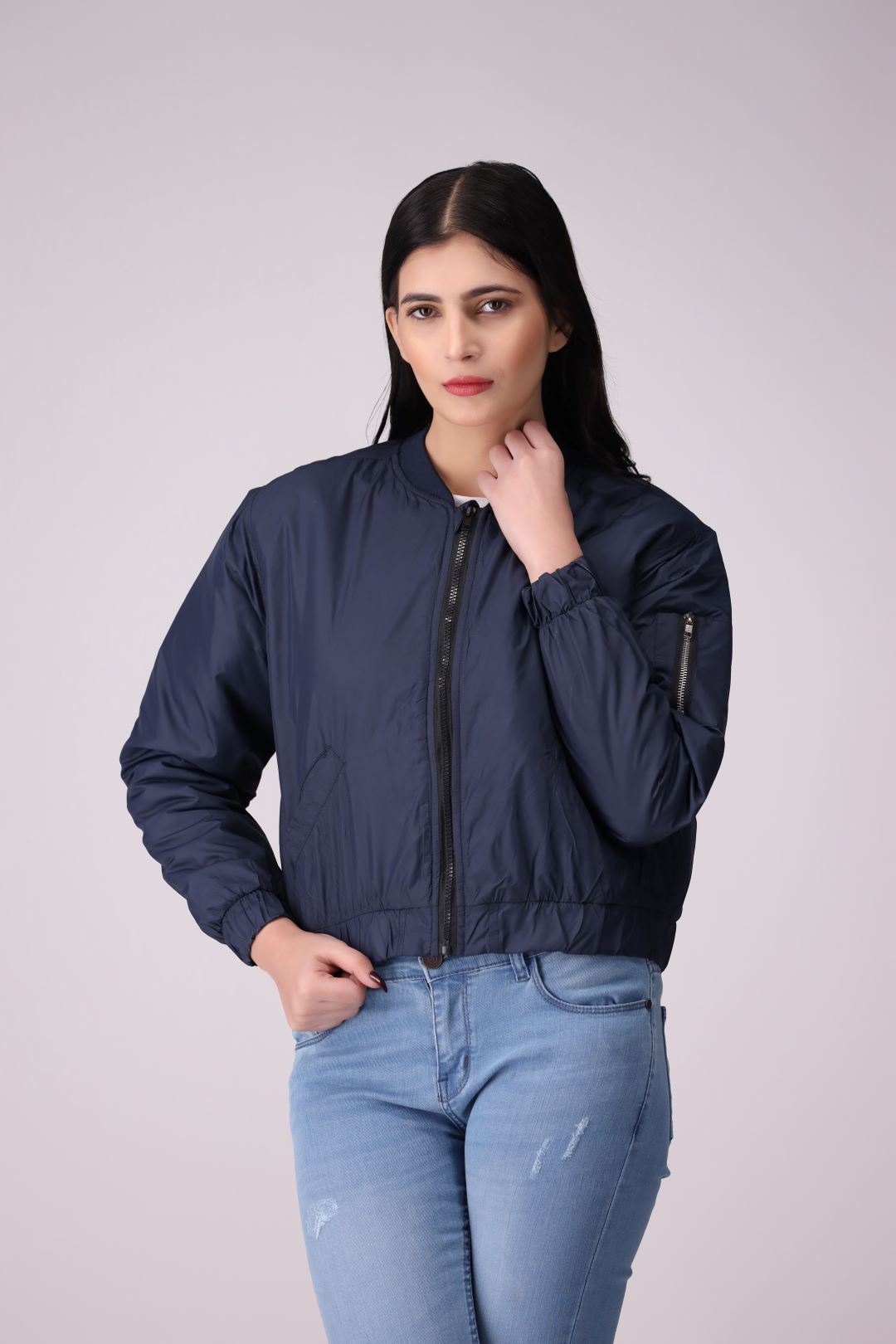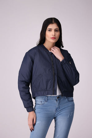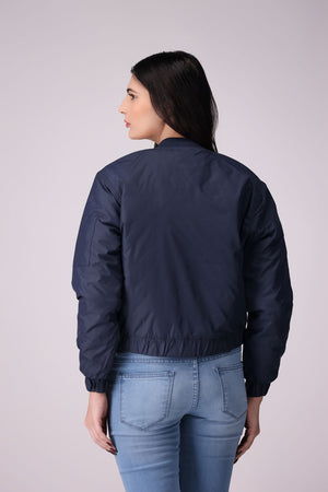 Navy Blue Ladies cropped Parachute Jacket in Imported Fabric