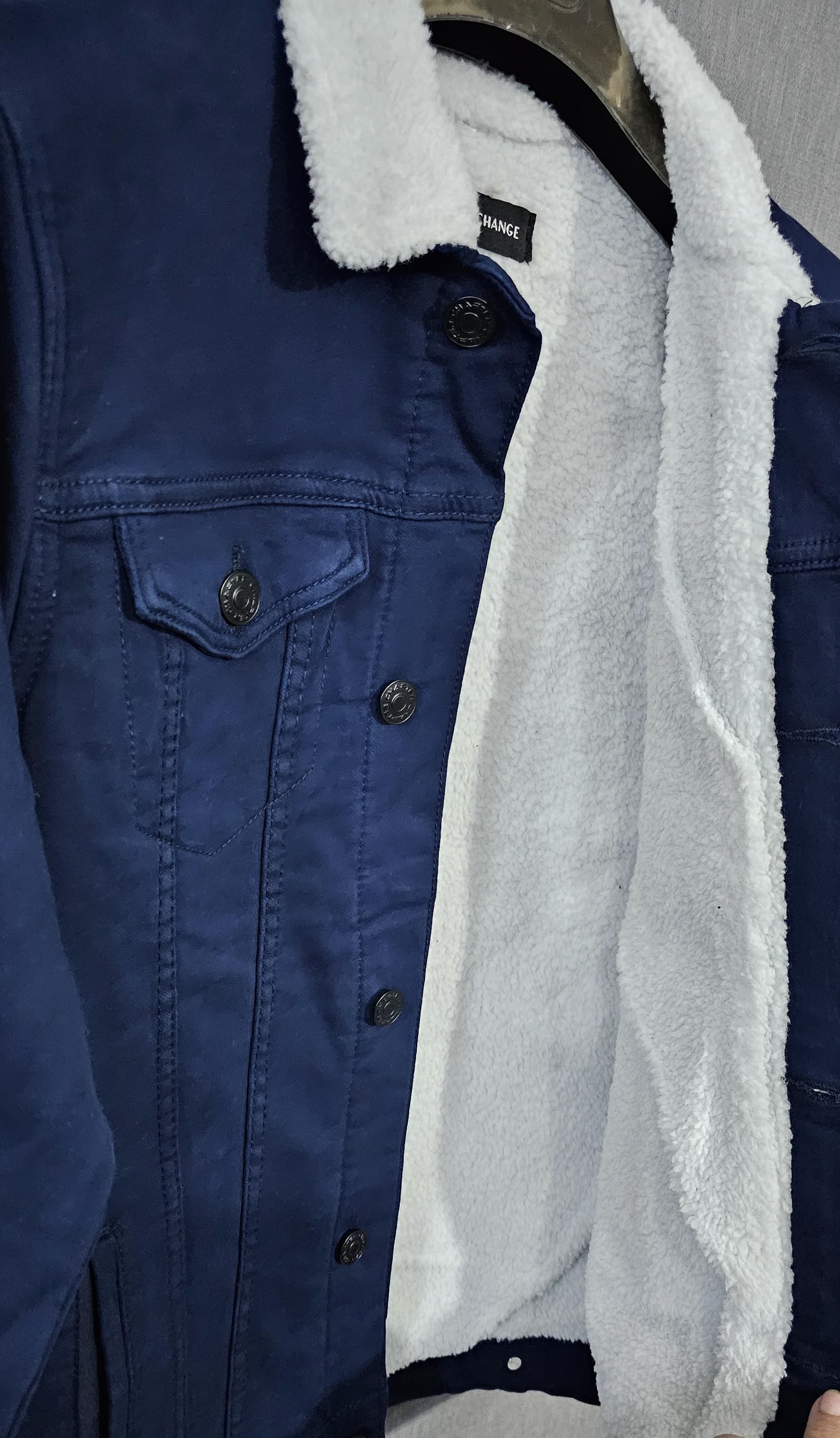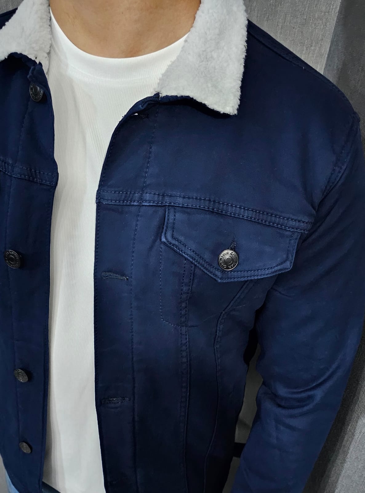 Navy Blue Men Full inside Fur Denim Jackets for Winter