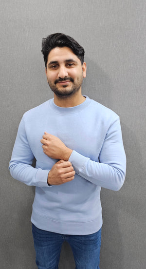 Sky Blue Men's Premium Sweatshirts Cotton Fleece Fabric